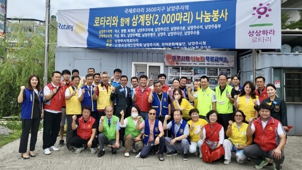 이번 행사를 주관한 남양주지역 로타리클럽 관계자는 “어르신들이 정성껏 준비한 삼계탕을 드시고 삼복더위를 이겨 내시는 데 도움이 됐으면 하는 마음으로 나눔 행사를 추진했다”며 “앞으로도 로타리클럽이 소외계층을 찾아가 더 자주 봉사하며 나눔 리더로서 모범을 보이겠다”고 소감을 전했다.