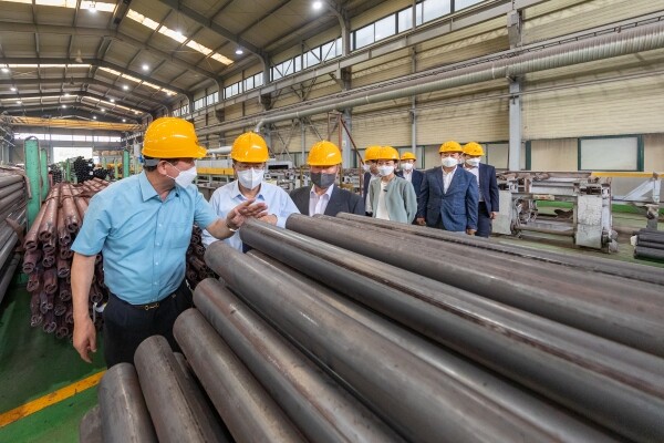 김 지사는 이날 ㈜율촌 공장을 시찰하고 납품단가와 관련한 중소기업의 의견을 청취했다.
