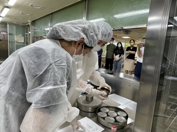 학생들의 식중독 발생을 가정해 인체·환경 검체 채취, 음용수·보존식 확인, 학생과 1대 1 면담, 역학조사, 급식실 위생을 점검하는 등의 훈련이 진행됐다.