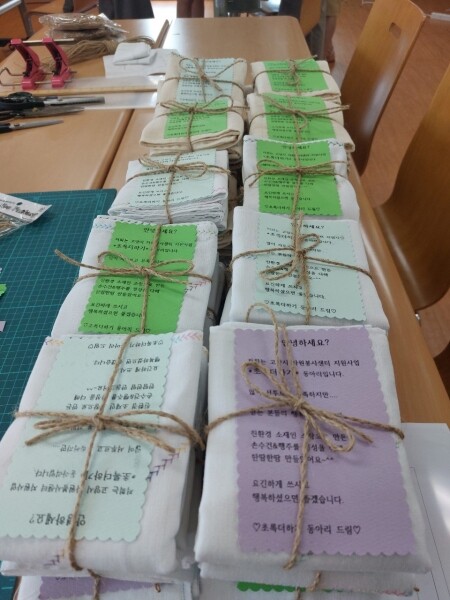 시민참여 봉사활동 지원사업에 참여 중인 ‘초록더하기’ 봉사단은 홀몸 어르신께 드릴 200개의 소창행주와 손수건을 직접 재단, 제작해 마두1동행정복지센터에 전달했다.