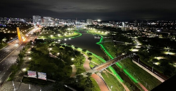 이번에 설치한 야간 경관조명은 올해 4월부터 착공을 시작했으며 총사업비 10억원을 들여 호수공원·소리천 합류부부터 하류까지 총 1.6km에 7가지 색상의 LED 등을 설치했다.