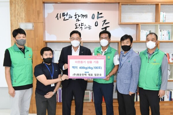 이날 전달식에는 강수현 시장, 임은오 ㈜명운전력 대표, 새마을직공회장 오수영이 참석했다.