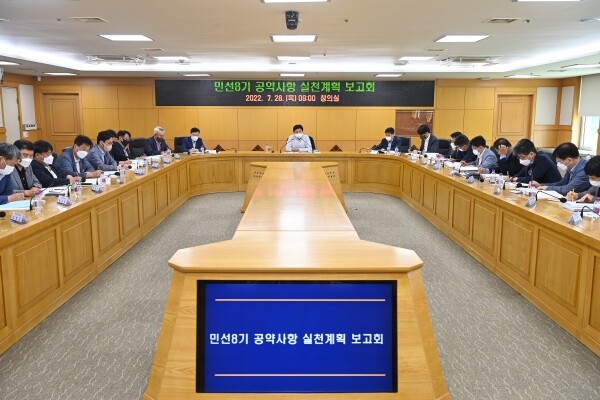 공약 관련 추진 부서장들이 공약별 정책목표, 연도별 재원확보 대책과 세부 추진계획 등 구체적 실행 방안을 보고하고 문제점과 대책에 대해 심도있게 토의하는 방식으로 진행됐다.