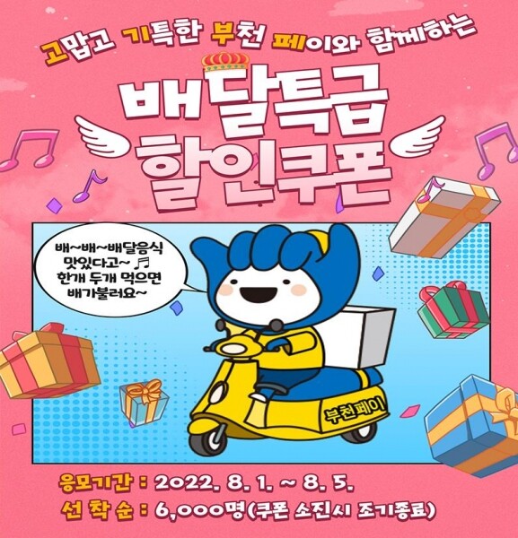 부천시와 카카오톡 채널 친구를 맺으면 선착순 6,000명에 한해 부천페이로 결제 시 이용할 수 있는 배달특급 3,000원 할인쿠폰을 지급한다.