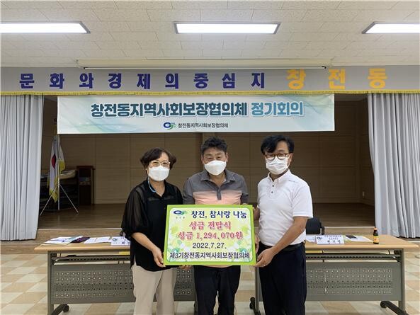 이번 성금은 지난 5월 임기가 종료된 제3기 창전동지역사회보장협의체 민간위원들이 임기가 종료되면서 남은 회비 전액을 기탁하는 것으로 의견을 모아 마련됐으며 연말에“산타할아버지오셨네 사업”추진에 활용될 예정이다.