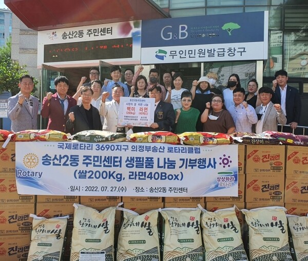 의정부송산로타리클럽은 꾸준한 선행과 기부를 통해서 지역복지 증진을 위해 노력하고 있으며 건전한 나눔 문화 조성에 앞장서고 있다.