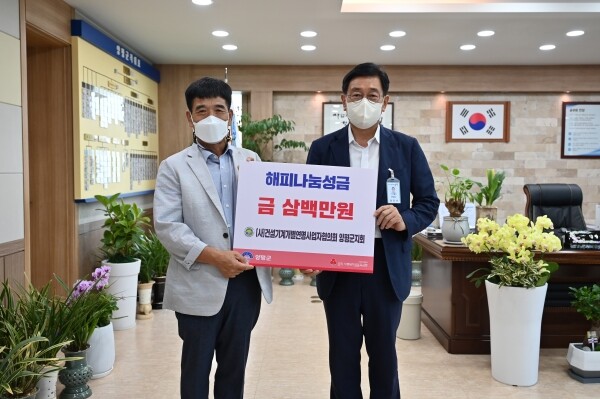 건설기계개별연명사업자협의회 양평군지회는 매년 군의 취약계층을 위한 민관협력 집수리 사업에 참여해 매년 2가구 이상 주거환경을 개선해주고 있으며 해피나눔성금 및 동절기 사랑의 연탄모으기 성금 기탁 등 지역사회를 위한 지속적인 나눔 활동을 실천해오고 있다.