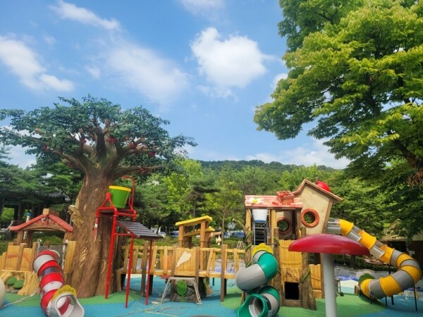 특히 잭과 사과나무 물놀이터는 동화 ‘잭과 콩나무’에서 착안한 디자인으로 동화 속 상상의 나라를 구현해 어린이의 창의력을 키우고 감성을 풍부하게 해주는 공간으로 조성됐다.
