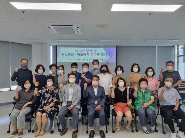 발대식에는 중산2동 주민자치회 위원 및 중산2동 각 직능단체장과 지역가치교육원 여용옥 컨설턴트가 참석해 총회와 축제 일정 및 준비사항을 공유하고 성공적인 총회와 축제 개최를 다짐했다.