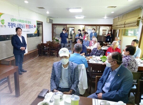 이번 간담회는 주광덕 시장이 취임 이후 처음으로 대한노인회 남양주시지회 회원들과 만나는 자리로 대한노인회 남양주시지회의 지회장 및 분회장 17명 등이 참석해 효율적인 노인 복지 업무 추진을 위한 의견을 자유롭게 나누며 편안한 분위기 속에서 소통하는 시간을 가졌다.
