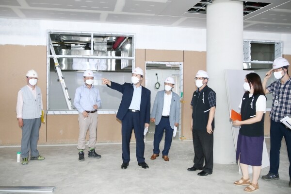 이날 김 시장은 현장관계자로부터 공사 추진현황을 보고받고 본관과 이어지는 동선, 목욕탕의 높이와 바닥재, 안전펜스 등 어르신들이 안전하고 편리하게 노인전용목욕탕과 경로식당, 강당 등을 이용하실 수 있는지 꼼꼼히 공사현장을 점검했다.