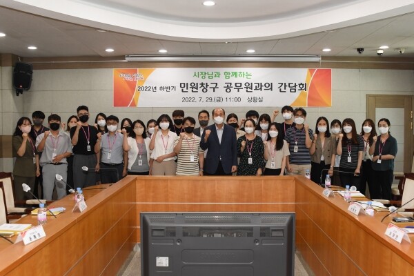 이번 간담회는 갈수록 증가하는 민원인 응대 과정에서 발생하는 다양한 갈등상황 및 민원인의 각종 폭언 등에 시달리는 민원창구 직원들의 고충 청취 및 격려를 통해 민원응대에 최선을 다하고 있는 직원들의 사기진작을 위해 마련됐다.