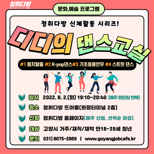 댄스 프로그램 ‘디디의 댄스교실’은 8월 2일부터 총 5주에 걸쳐 매주 화요일 저녁에 운영된다.