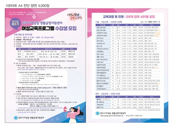 신청을 희망하는 시민은 양주시여성일·생활균형지원센터 홈페이지에서 접수하면 된다.