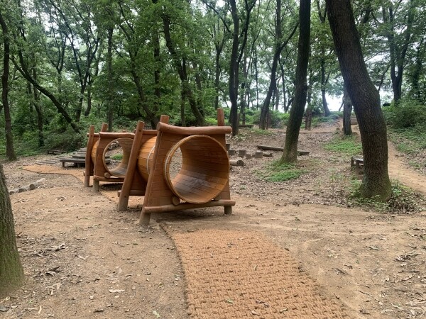 모담산유아숲체험원은 자연지형을 이용해 동선을 따라 조합놀이대, 통나무건너기 등 다양한 시설물을 설치했고 통진유아숲체험원에는 3종류의 로프놀이시설을 설치해 안전과 재미를 제공하는 시설물 위주로 설치를 했다.