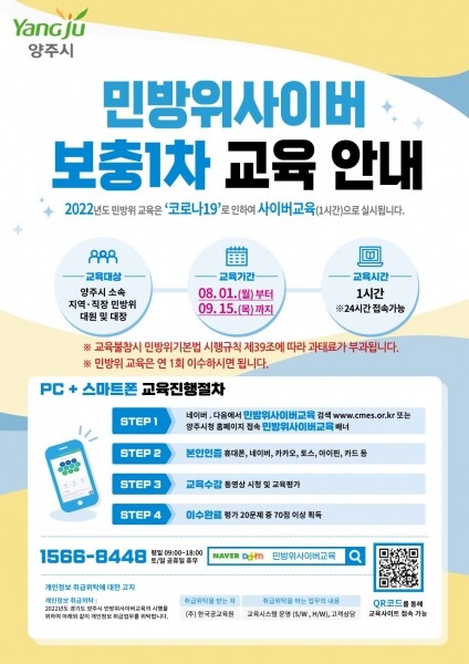 교육대상자는 양주시청 홈페이지 배너 또는‘민방위 사이버교육’ 홈페이지를 통해 교육을 수강할 수 있다.