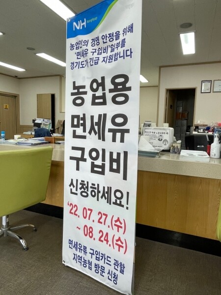 지원 대상에 해당하는 자는 면세유 카드를 발급받은 각 지역 농협에 오는 24일까지 신청하면 되며 기한 내 신청한 자만 지원이 가능하다.