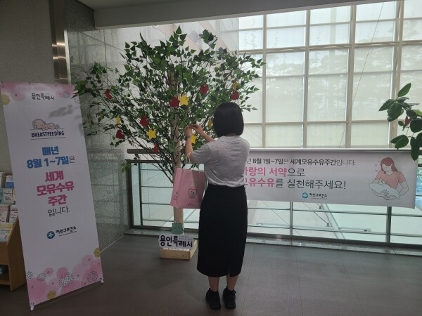 기흥구보건소에선 모자보건실 앞과 임산부 휴게실에 모유 수유의 장점, 방법 등을 담은 책자와 게시물을 전시한다.
