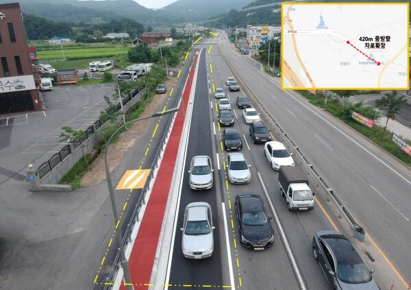 구는 이를 해결하기 위해 기존 농로 구간을 도로로 편입시켜 우회전 전용 차선을 설치했으며 지난 1일 기준 이동 차량의 수가 시간당 평균 2310대로 늘어난 것을 확인했다.