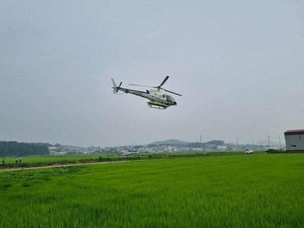 7월 25일 27일 이틀 간 헬기를 이용한 방제가 진행됐고 28일 ~ 29일은 헬기 방제에 어려움이 있는 전신주 부근 및 정밀한 방제가 필요한 농지에 드론을 투입해 맞춤형 방제를 완료했다.