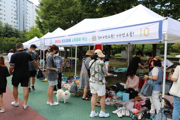 이날 무더운 날씨에도 시민참여자 11팀 40명이 참여해 집에서 쓰지 않는 물품을 이웃들에게 싸게 판매함으로써 자원재활용 운동에 동참했다.