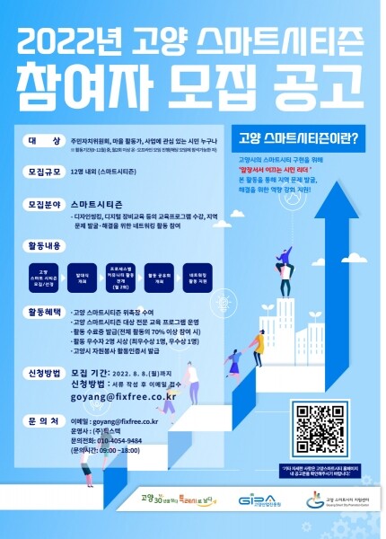 고양 스마트시티즌 활동 기간은 8월부터 11월까지이며 월 2회 이상 온·오프라인 모임에 참석 가능해야 한다.