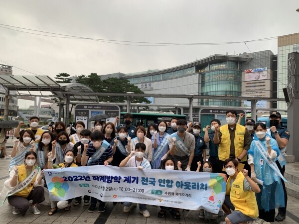 수원시는 본격적인 방학을 맞은 2일 오후 6시 청소년 밀집지역인 수원역 로데오거리에서 현장밀착형 가출예방 활동을 위한 ‘청소년쉼터 연합 아웃리치’ 활동을 벌였다.