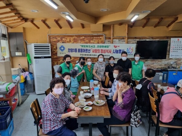 특히 이날은 안양3동 새마을부녀회에서 배식과 설거지 봉사활동을 함께 해 보는 사람들의 마음을 훈훈하게 만들었다.