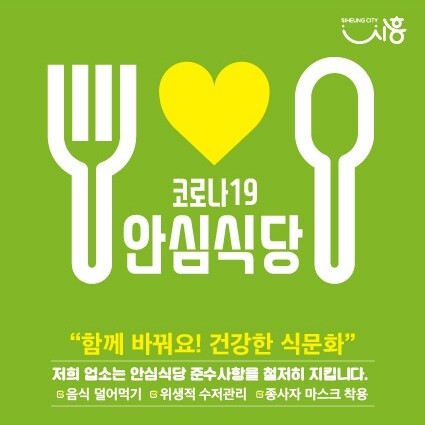 안심식당 지정을 위한 세부 사항은 시흥시 홈페이지 → 시정소식 → 고시공고란에서 ‘안심식당’을 검색하면 안심식당 모집에 대한 자세한 내용을 확인할 수 있다.