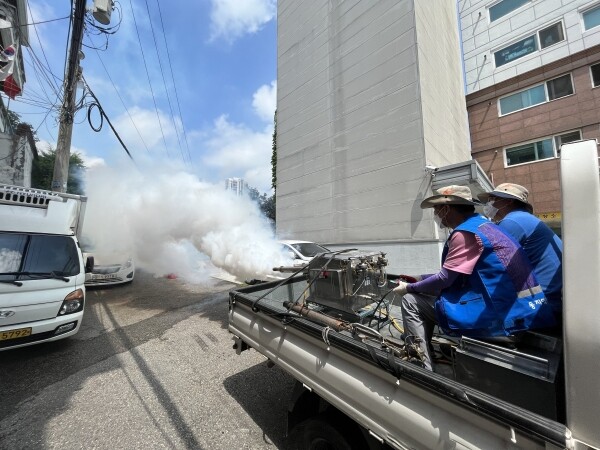 철산2동 지역사회보장협의체는 주민들의 건강과 안전한 주거 환경을 위해 3년째 방역을 진행하고 있다.