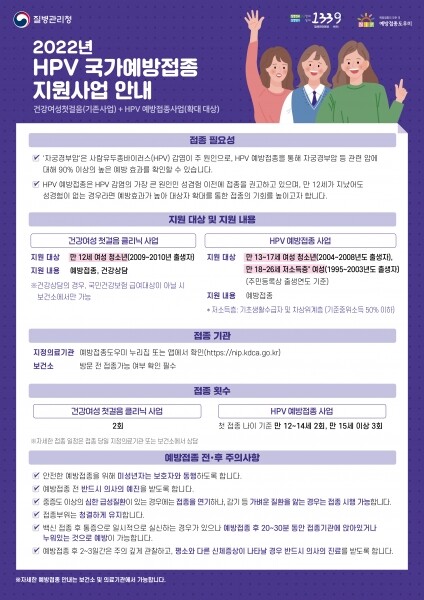 이천시보건소 관계자는 "특히 이번 연도에 마지막 지원 대상인 2004년생 여성과 1995년생 저소득층 여성은 올해 안에 놓치지 말고 1차 접종을 받아 달라"고 당부했다.