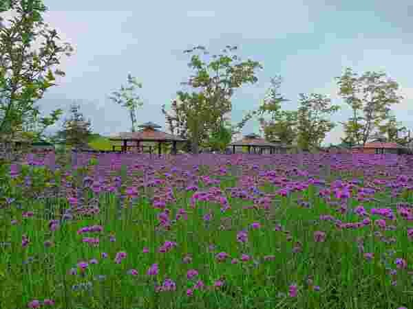 지난 봄에 조성한 튤립 식재지에 파종한 백일홍은 7월 말부터 개화를 시작해 현재 백일홍꽃이 80% 이상 활짝 피었으며 보라색으로 물든 버베나 꽃은 여름 바람에 맞춰 물결처럼 흔들리는 장관을 연출하고 있다.