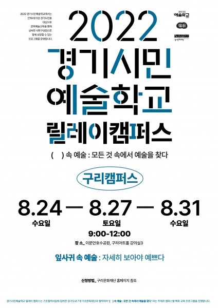 강좌는 이문안호수공원과 구리아트홀 강의실3에서 8월 24일 27일 31일에 각각 9시부터 12시까지 3회 운영된다.