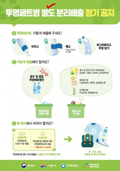한편 ‘투명페트병 별도 배출제’는 무색투명한 생수·음료 페트병을 일반 플라스틱과 별도로 배출하는 제도다.