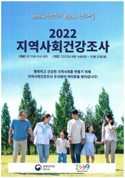 지역사회건강조사는 질병관리청과 전국 17개 시·도, 255개 보건소가 공동 수행하는 국가승인 통계조사로 2008년부터 시작되어 매년 전국적으로 실시하고 있다.