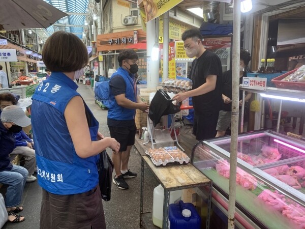 순간2동특공대에서 전통시장 활성화 홍보를 맡고 있는 안성2동 주민자치위원회는 30도를 웃도는 무더위 속에서도 전통시장 활성화 홍보활동과 온누리 상품권을 이용한 장보기 행사를 추진하고 행사를 통해 구입한 식료품을 주민센터에 기탁해 어려운 이웃들과 나눴다.