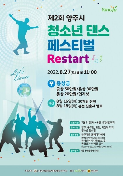 양주예총 관계자는 “지난 2년간 코로나19로 대회를 진행하지 못해 아쉬운 점이 많았지만, 코로나를 이겨내는 마음으로 꿈과 끼가 넘치는 청소년과 초·중·고등학생 여러분들이 한날 함께 모여 서로의 실력을 뽐내며 성장하고 그 안에서 즐거움을 찾을 수 있도록 청소년 여러분들의 많은 관심과 참여를 바란다”고 전했다.