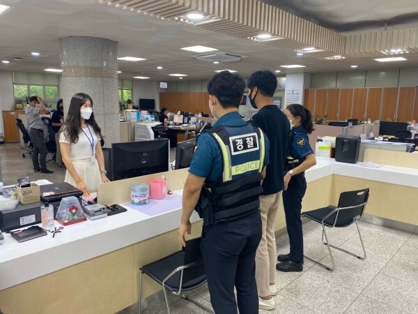 이번 모의훈련은 광주경찰서 초월파출소와 합동으로 실시했으며 민원인 응대 과정에서 발생할 수 있는 다양한 비상상황에 적절히 대응함으로써 안전한 근무환경을 조성하고 보다 신속·적절하고 체계적인 대처 능력 향상을 도모하기 위해 마련됐다.