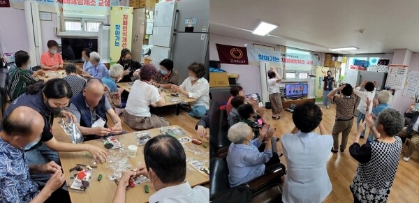 이날 치매예방교실은 치매에 대한 부정적 인식 개선을 위한 교육을 시작으로 쪼물락 비누 만들기를 통해 어르신들이 즐겁게 소근육을 사용할 수 있도록 진행했다.