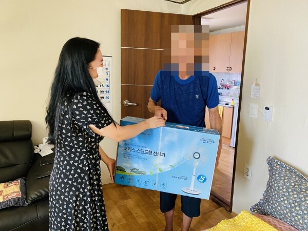 이날 시대전자에서 기탁한 선풍기는 맞춤형복지팀 직원이 하절기 복지사각지대 집중 조사를 통해 발굴된 폭염 취약 독거노인 가정에 방문해 전달했다.