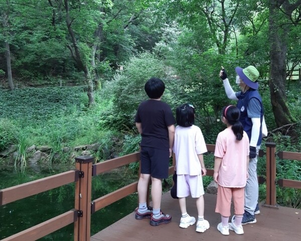야생화단지 산책로 목재데크를 교체하고 수서곤충을 가까이서 관찰할 수 있도록 관찰데크를 조성했다.