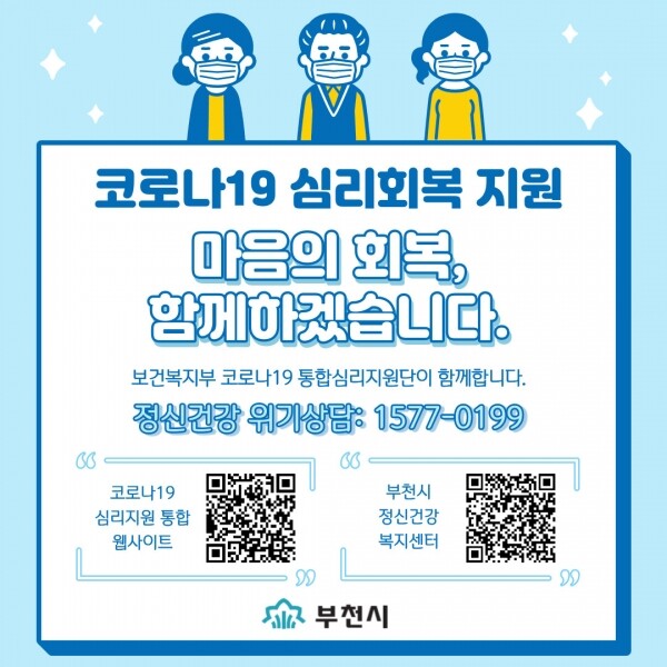 코로나19로 인해 정신건강 상의 어려움을 겪는 부천시민이라면 누구든 부천시정신건강복지센터를 이용할 수 있다.