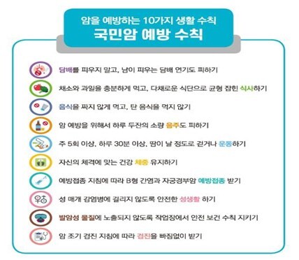 암은 조기에 발견할 경우 치료비가 적게 들고 완치까지 가능하기에, 국가에서는 조기에 검진이 가능한 위암, 유방암, 자궁경부암, 간암, 대장암을 저소득층의 해당 검진대상자에게 무료 암 검진을 안내하고 있다.
