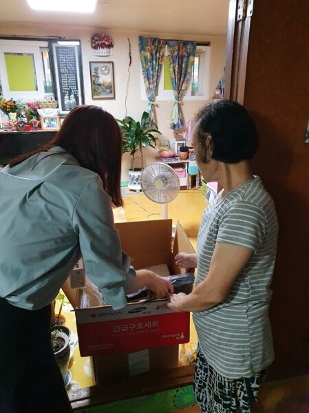 또한 물품 지원과 함께 피해 세대의 안부 및 건강 상태를 확인하고 주거환경을 점검했으며 침수로 인해 더 이상 사용이 어려운 바닥 장판과 도배지 등을 민간기관을 연계해 향후 교체할 예정이다.