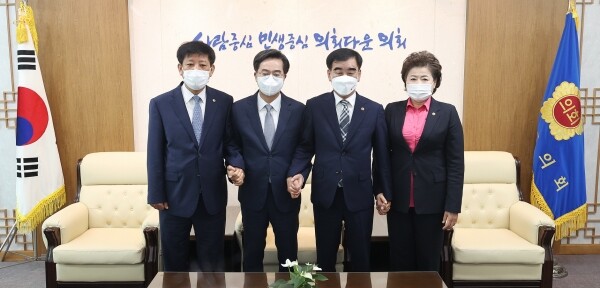 염 의장과 남경순·김판수 부의장은 이날 오전 의장 접견실에서 김동연 경기도지사를 만나 민생경제 회복을 위해 기관 간 협력을 강화하고 속도감 있는 의정 및 행정을 이끌어내기로 했다.