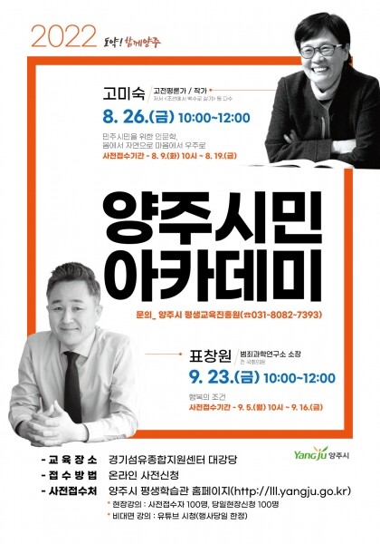 사전 신청은 양주시 평생학습관 홈페이지에서 온라인으로 접수 가능하다.