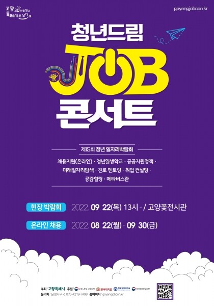 이번 청년드림 JOB콘서트는 구인기업의 채용을 지원하는 온라인 채용 고양시의 청년일자리사업 청년일생학교 미래일자리탐색 분야별 현직 직업인과의 진로 멘토링 입사서류, 면접 클리닉을 지원하는 취업 컨설팅 공공지원 정책 등의 주요 테마로 다채롭게 구성된다.