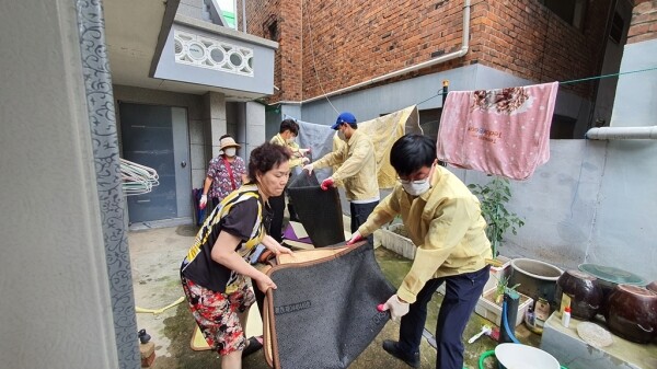 가능동 주민센터는 10일 통장협의회 등과 함께 침수된 주택의 가구, 집기류 등 각종 쓰레기를 집 밖으로 반출하는 작업을 실시했다.