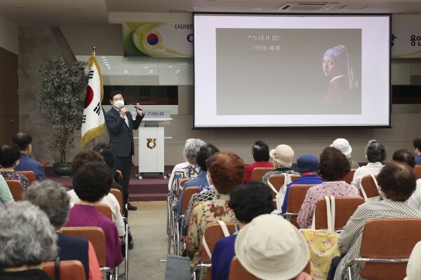 이 시장은 세익스피어의 4대 비극 ‘햄릿’을 모티브로 한 다양한 미술 작품들을 소개하면서 ‘햄릿’의 줄거리를 상세히 등 창의적인 강의로 어르신들의 귀를 사로잡았다.