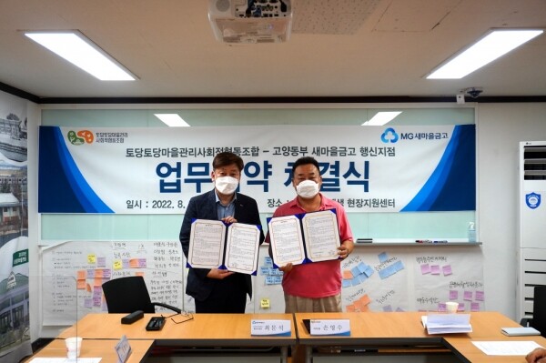 능곡 도시재생현장지원센터에서 열린 이번 협약식에는 토당토당 마을관리사회적협동조합 손영수 이사장, 고양동부새마을금고 행신지점 최문석 지점장, 능곡 도시재생현장지원센터 권유철 센터장 등이 참석했다.